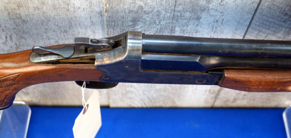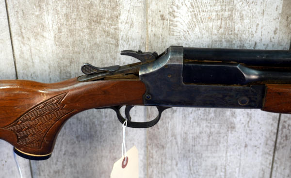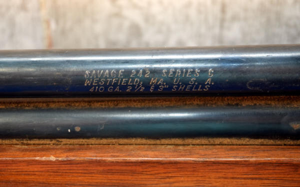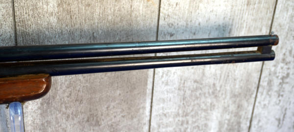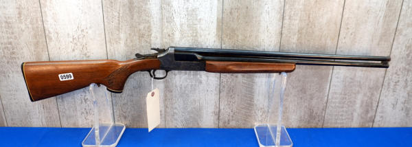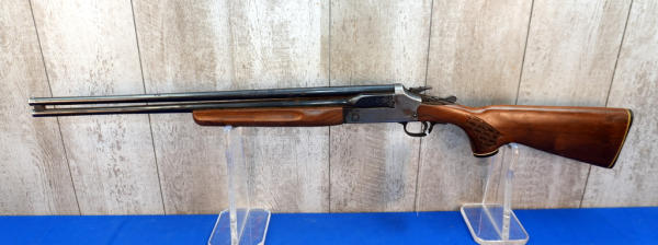 HME; 24" BBLs; extremely hard to open the breach; rust towards the muzzle; has damage to stock behind receiver; one trigger; barrel select on hammer; plastic butt plate; case hardened receiver; 2.5" & 3"; Top-FC, Bot.-MC; needs a cleaning; USA; SN#C560467; A-353