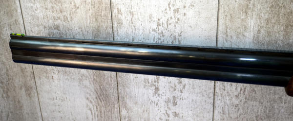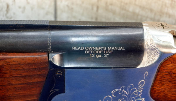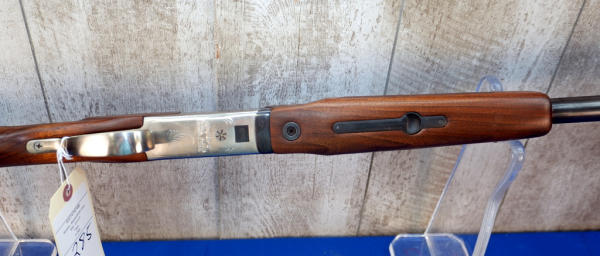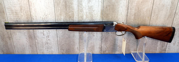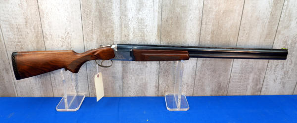 28.5" BBLs; easy break action; stainless receiver w/scroll engraving; single gold trigger; rubber recoil pad; very nice wood; barrel shows a couple minor finish spots; hy-vis front sight; screw in chokes; 3"; Russia; SN#022747874B; A-369