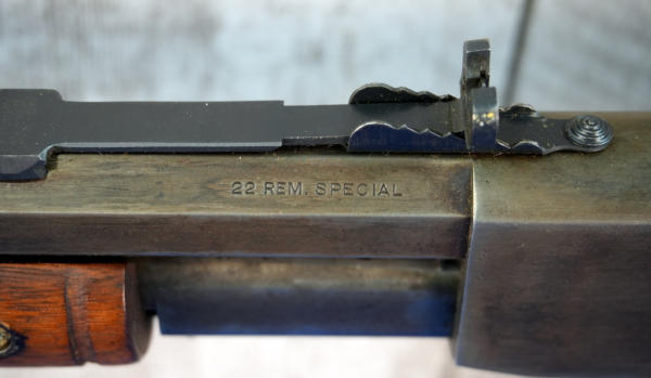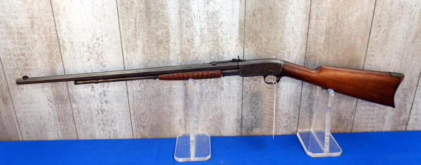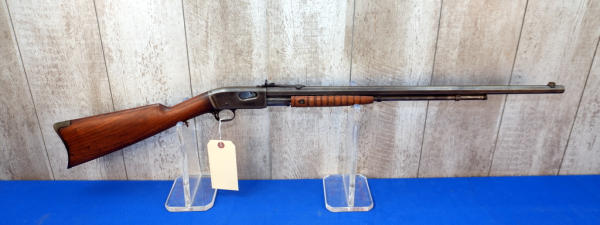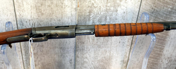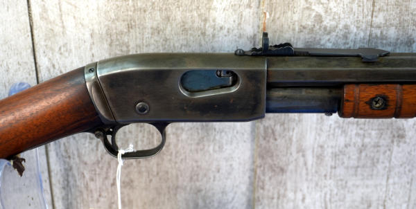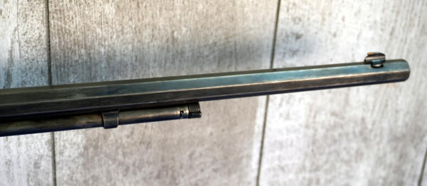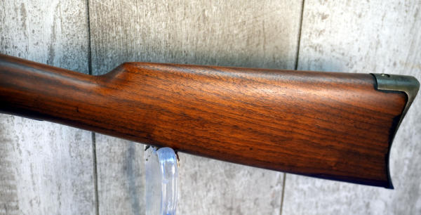 24" Oct. BBL; bluing has been buffed off, very light; wood stock has crack behind receiver on both sides; metal crescent butt plate; smooth action; hard caliber to find; USA: SN#248928; A-360