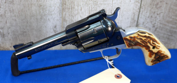 4.75" BBL; nice bluing; stag grips; STS trigger guard and straps; good looking gun; USA; SN#40-00514; A-356