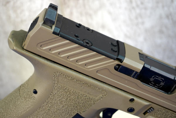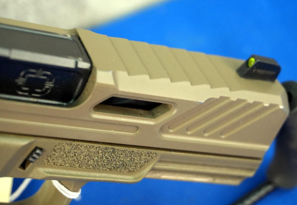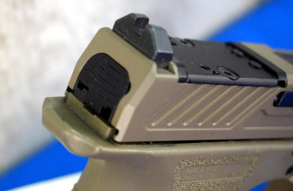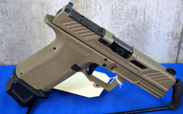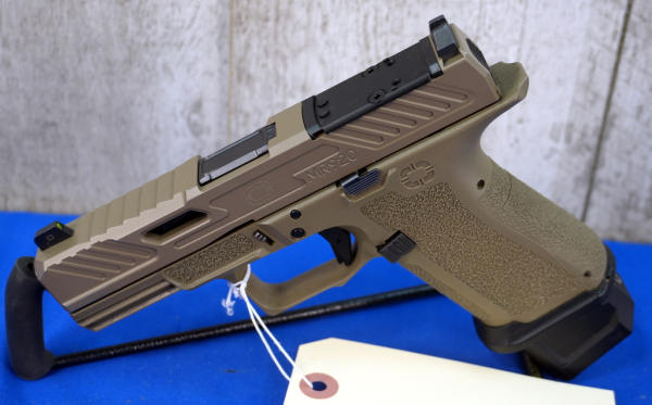 4" BBL; military brown synthetic body w/steel slide; front night sight; optics ready; two magazines; like new condition; USA; Sn#SSC060366; A-373