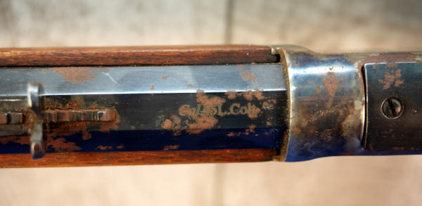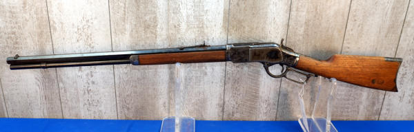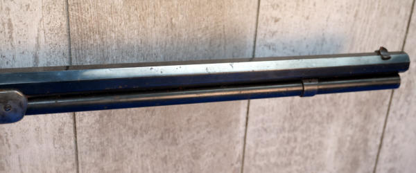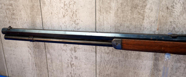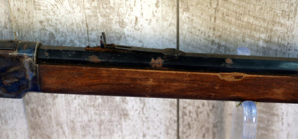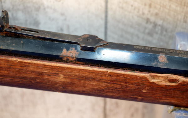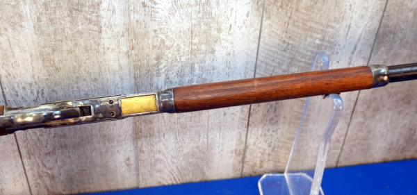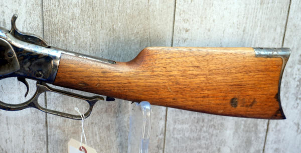 24" Oct. BBL; smooth action; case hardened receiver, lever, hammer, forearm cap & metal crescent butt plate!; wood is light on finish and has a small piece missing in forearm on right side; metal has spotting and surface rust; USA; SN#W730280; A-354