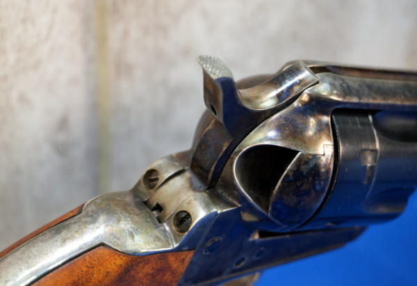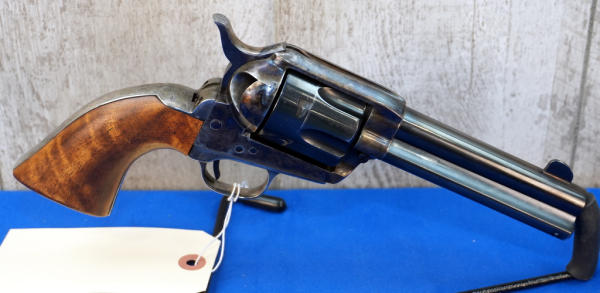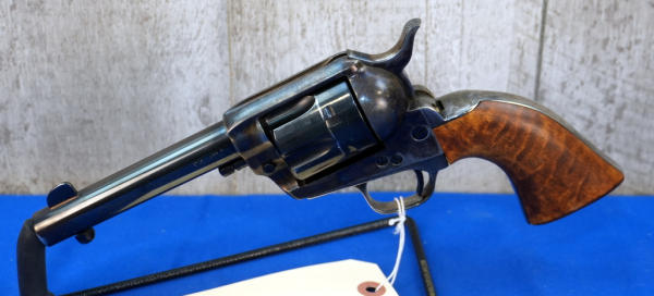 4.75" BBL; case hardened receiver, hammer and grip straps; smooth wood grips; minor bluing loss around the muzzle; 6-shot fixed cylinder; Italy; SN#E09794; A-354