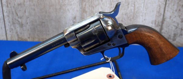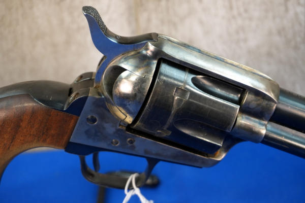4.75" BBL; case hardened receiver; smooth wood grips have a few dings; finish is pretty nice; has pretty deep drag lines on the 6-shot fixed cylinder; Italy; SN#90720; A-354