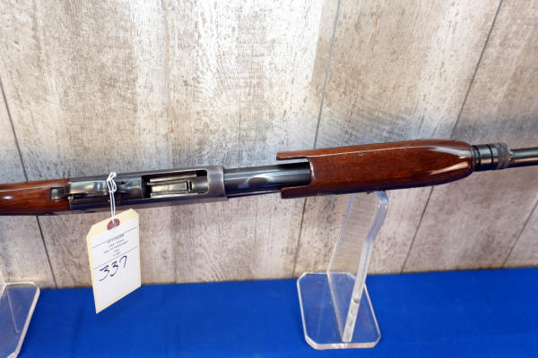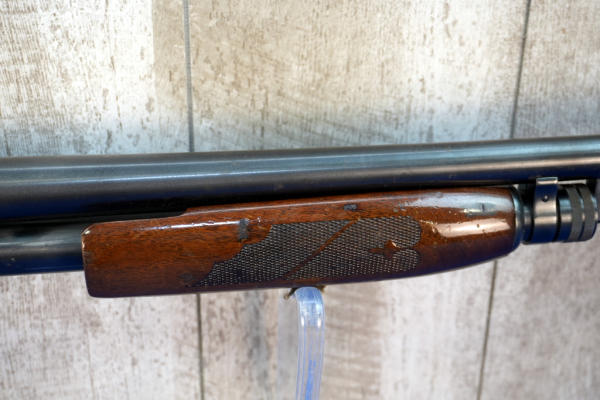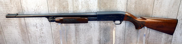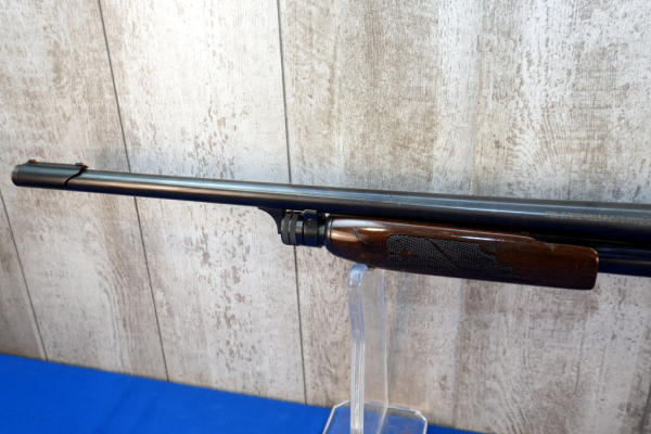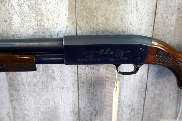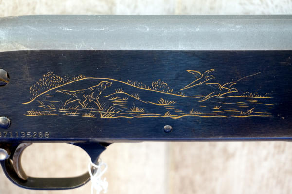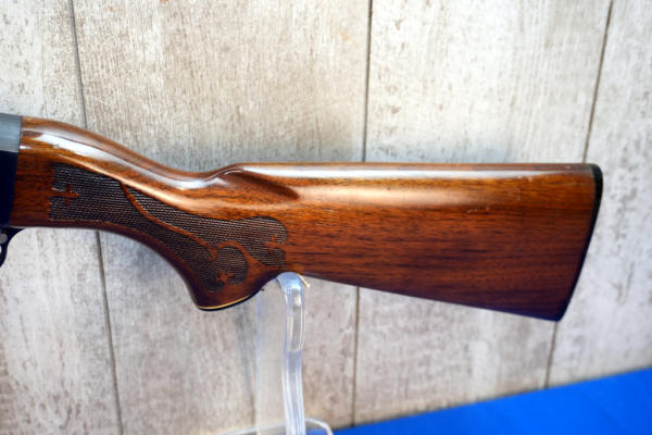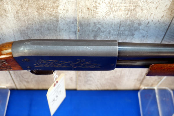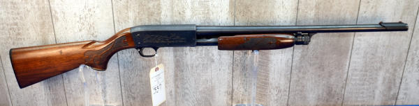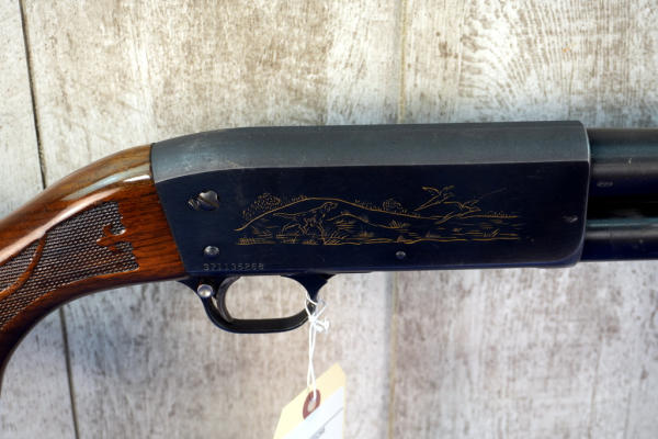22.5" Rnd. BBL w/hy-vis front sight added; action catches just alittle bit on the release; nice wood stock w/good checkering and nice gloss, does have a few dings in the forearm; plastic butt plate; engraved receiver has gold finish in it; 2.75"; screw-in choke; USA; SN#371135268; A-365
