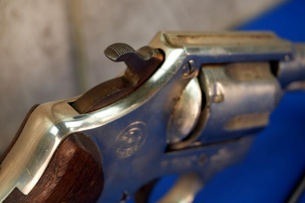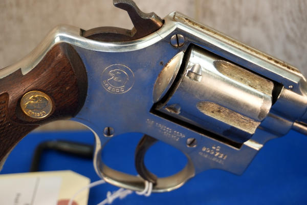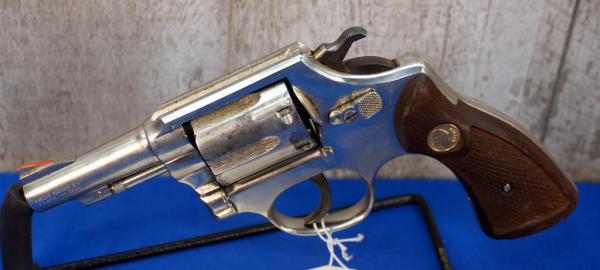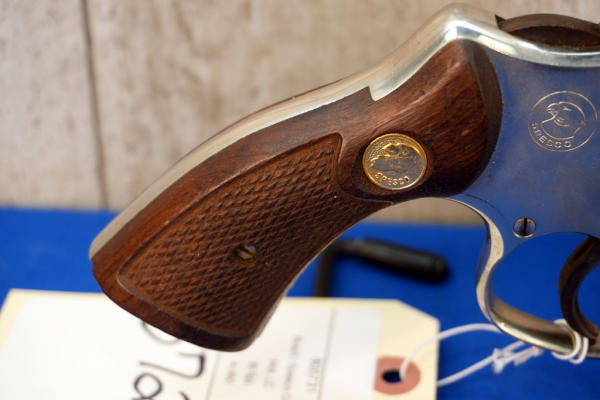 3" Barrel; nickel finish; wood checkered grips; 6-shot swing out cylinder; has some nickel plating that's came off on the cylinder; front ramp sight has been painted orange; Brazil; SN#800731; A-360