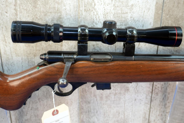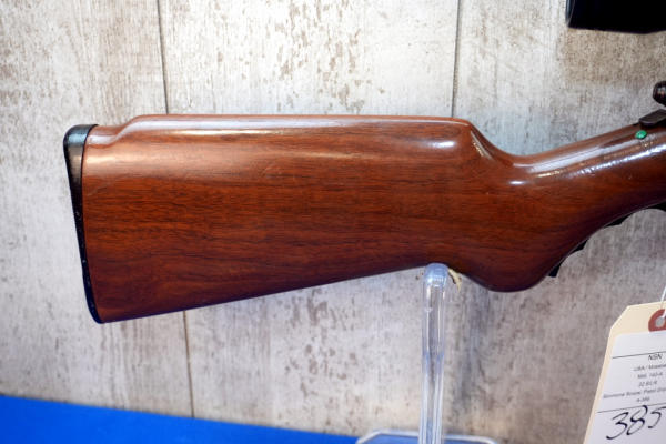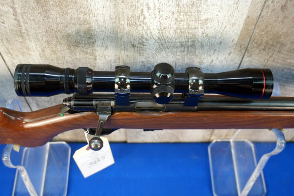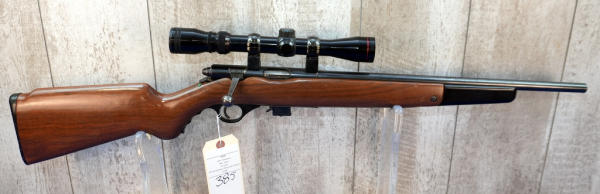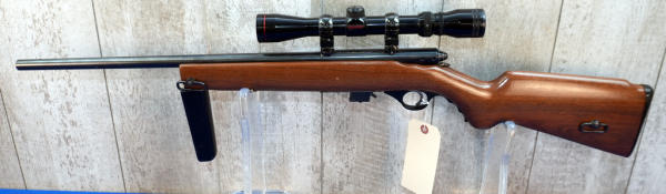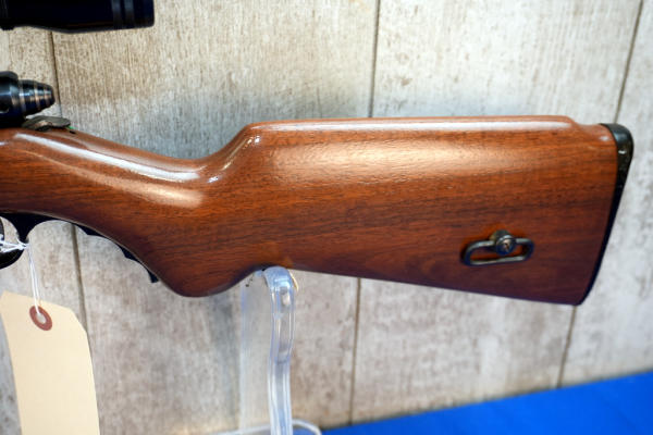 18.5" BBL; smooth action; removable magazine; fold down pistol grip forearm; plastic butt plate; nice wood stock; Simmons 3-9x32 scope; USA: No SN#; A-356
