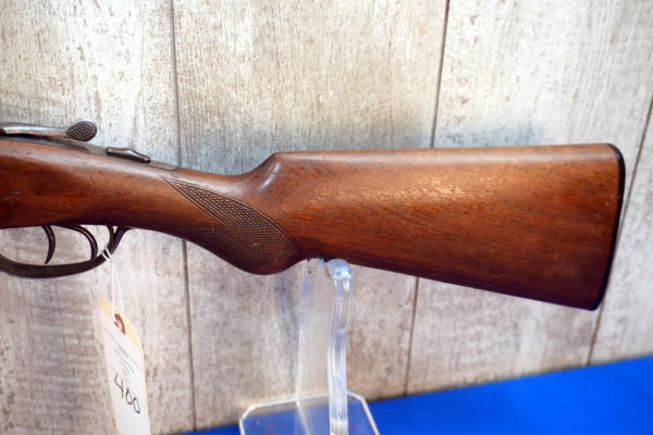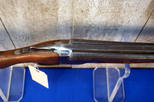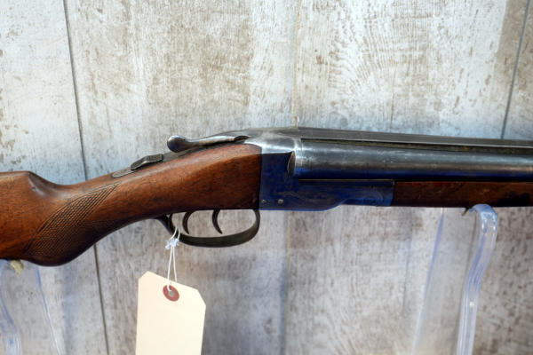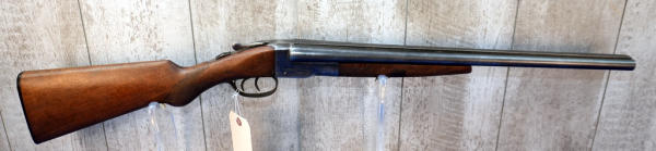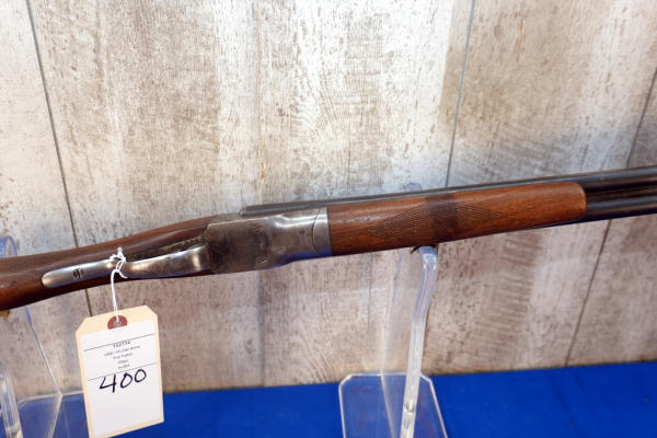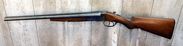 20" BBLs, have been cut down to this size….not originally a coach size gun; easy break action; case hardened receiver; bluing is thin; wood is solid; plastic butt plate; two triggers; both-CC; USA; SN#152774; A-354