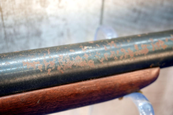HME; 36" LONG Heavy BBL; easy break action; has rusting on barrel; case hardened receiver; wood has some finish loss; rubber recoil pad; 3.5"; FC; USA; SN#AS231464; A-353