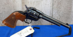 5.5" BBL; dark brown plastic checkered grips; nice bluing w/case hardened receiver; left grip has been repaired on the top corner; 6-shot fixed cylinder; clean; USA; SN#43653; A-356