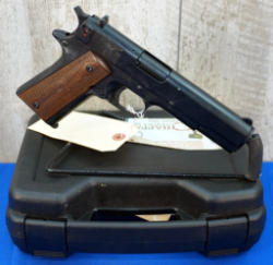5" BBL; wood checkered grips; flat black finish; looks unfired but could use a cleaning; factory hard case; Philippines; SN#RIA1164563; A-354