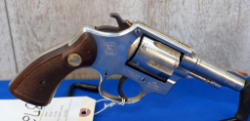 3" Barrel; nickel finish; wood checkered grips; 6-shot swing out cylinder; has some nickel plating that's came off on the cylinder; front ramp sight has been painted orange; Brazil; SN#800731; A-360
