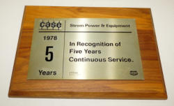 8"x9", awarded to Strom Equip. of Worthington, MN, neat piece