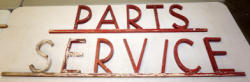 3.5" tall, 30" long, missing the "S" on Trucks, otherwise a good used original
