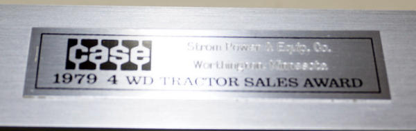 8"x9", awarded to Strom Equip. of Worthington, MN, neat piece