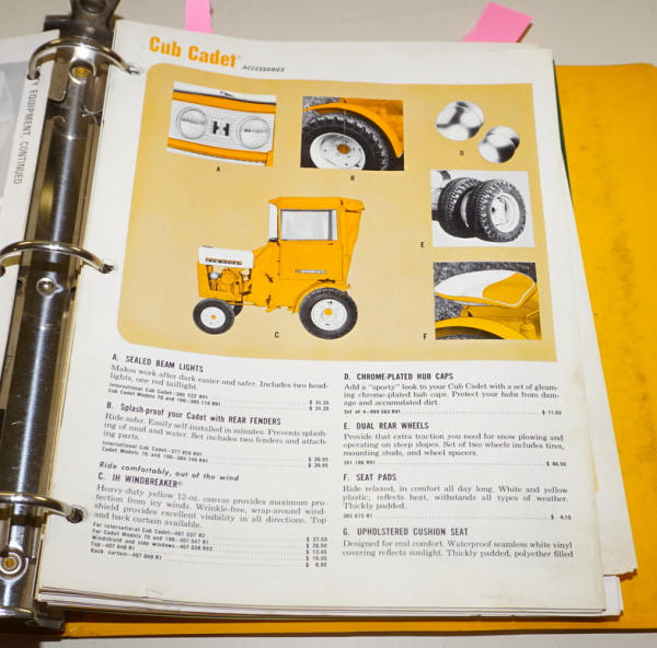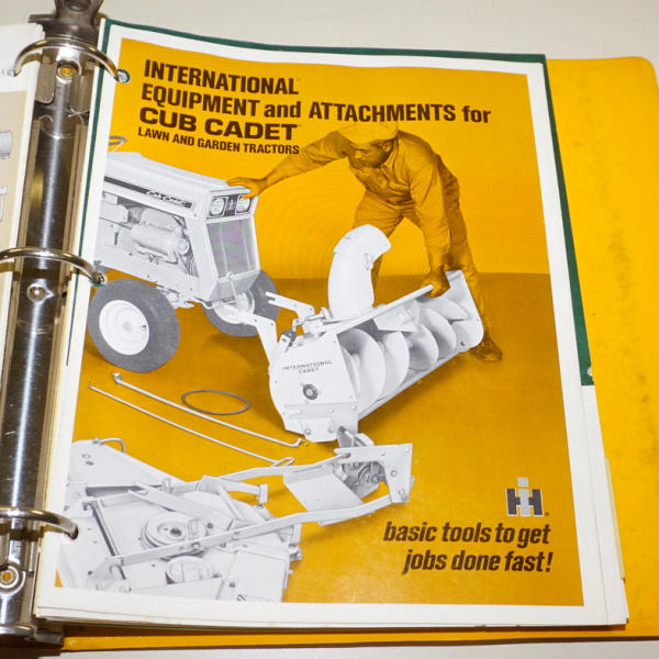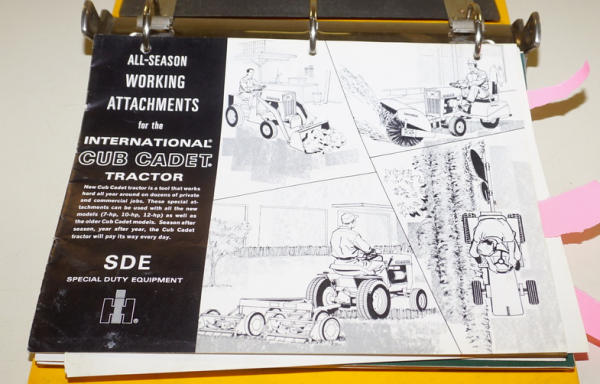 Binder has some scuffs and wear, contents are nice, full of dealer sales literature for Cub Cadets and lots of attachments too, contents overall are pretty clean, about 1" thick of material