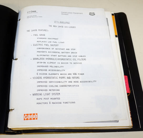 about 1" thick of Skid Loader brochures & sales bulletins, cover has some wear, inside is nice