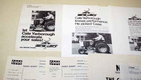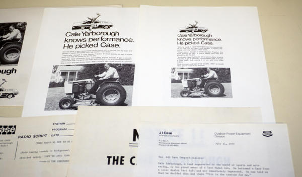 neat set, using NASCAR driver Cale Yarborough as the spokesman, radio script, ad slicks & original envelope, clean and nice