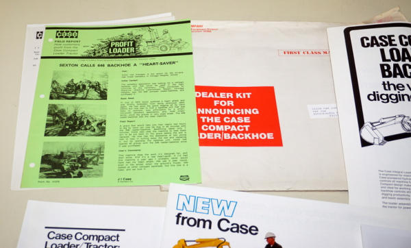 Radio Scrips, Ad Slicks, and advertising, all on the loader/backhoe for a L&G Tractor, in an oversized envelope, all to go