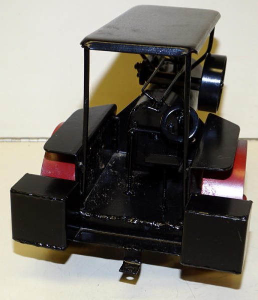all hand built from steel, kind of a generic looking tractor, but looks good, don't know the maker or model