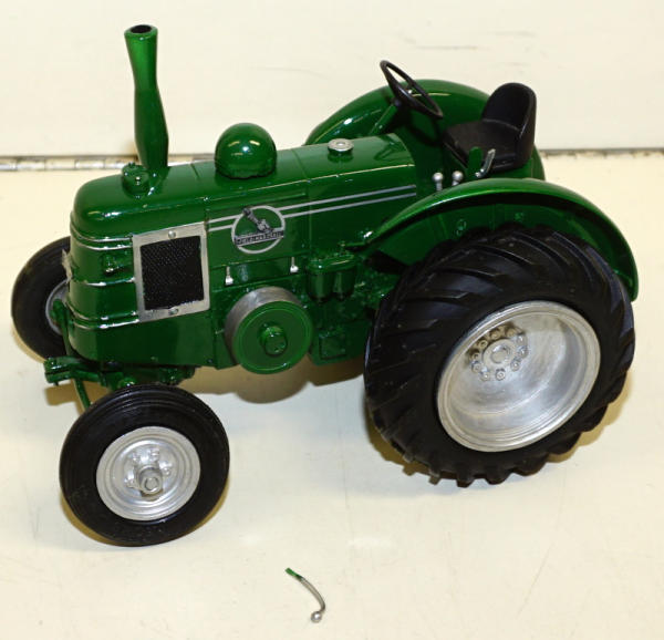 Very heavy, very nice detail, has one lever broken off, but included, I don't know who built this toy, but looks good, front axle is a little spread due to the weight of the tractor; no shipping, pickup only; this is the tractor that starts with a shotgun shell!