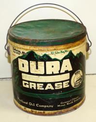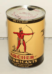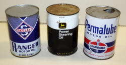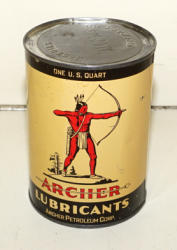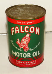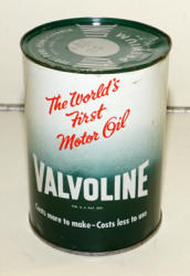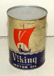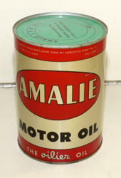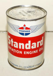 full, has scratches on the side and a little dented around the rim, marked "Aircraft Oil" on the lid