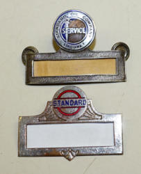 each about 2.5" long, Torch logo is a screw back for a hat, other is a pinback, both have some wear, 2x the money