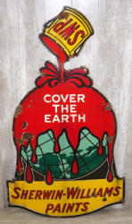36"x48", great color and gloss, from the Pittsburg Plate Glass Co., one side rates 9 condition, reverse side is 8.5 with a few light chips and wear, neat sign I haven't seen before