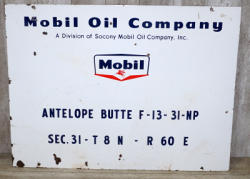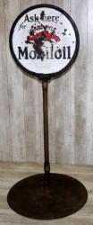 20" sign, both sides have numerous chips and wear, original large cast iron base marked "Socony Vacuum Oil Co.",; no shipping, pickup in Wakonda only