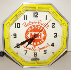 19" tall, original face has good color, but some paint is starting to flake, neon works good, runs & lights well, looks like a new cord, so probably has a new transformer; no shipping neon clocks, pickup in Wakonda only