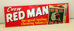 14.25"x23", one side is near mint, reverse side does not have chips, but has some stains that might come off, overall a very nice sign