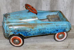 12"x6.5", heavy cardstock with tin lever and pedal, shows how the clutch & trans move, complete with some wear, comes in a nice showcase to display, unique piece