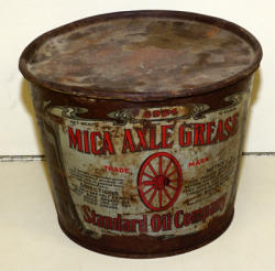 full, has scratches on the side and a little dented around the rim, marked "Aircraft Oil" on the lid