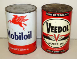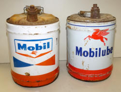 #328 - (2x) Mobil 5-gal Oil Cans--2 different styles