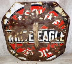 15"x24", great color on one side, but has about a 5.5" cut through the sign, reverse side has some more chips, rare sign, but condition isn't the best
