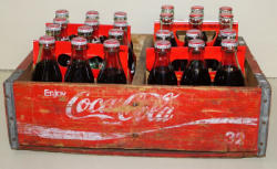 #308 - Wood Red Coca-Cola Crate w/ 4 6-packs of Coke Bottles