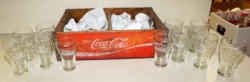 #312 - Red Coca-Cola Crate w/ 11 matching glasses