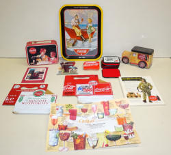 #316 - Box Lot of newer Coca-Cola Stuff--Trays, Coasters, Tins & misc.