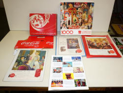 #318 - Box lot of Misc. Coca-Cola Stuff--Game Set, Puzzle, Magazine Ads & Packaging