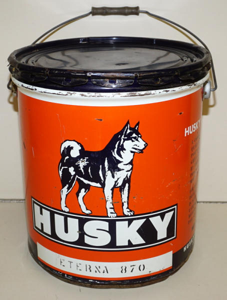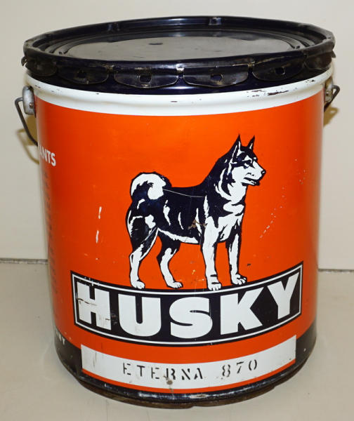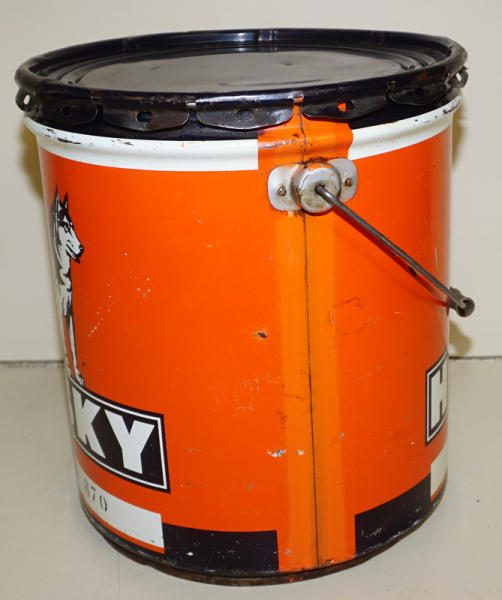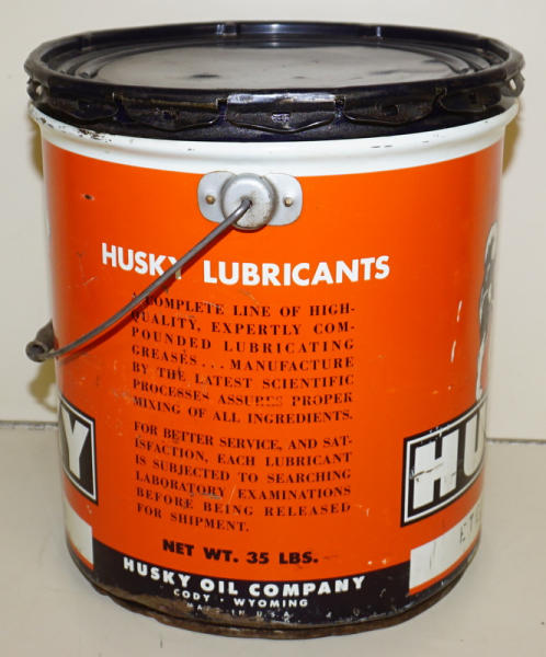 original lid, good graphics, empty, pretty clean, rates 8.5 condition