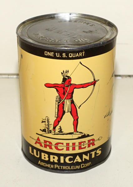 full, has scratches on the side and a little dented around the rim, marked "Aircraft Oil" on the lid