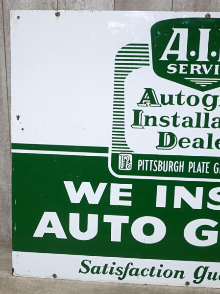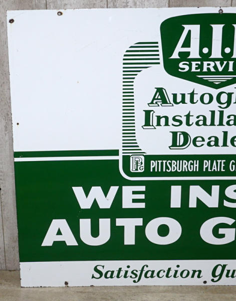 36"x48", great color and gloss, from the Pittsburg Plate Glass Co., one side rates 9 condition, reverse side is 8.5 with a few light chips and wear, neat sign I haven't seen before