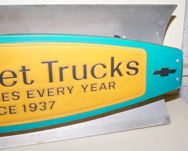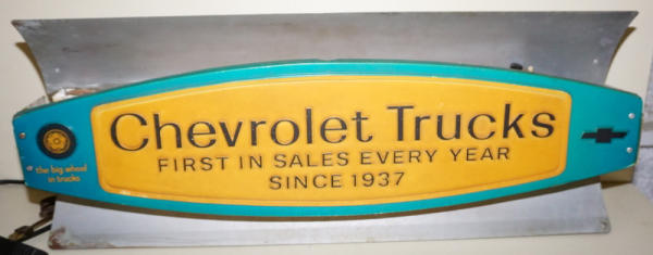 35"x14", metal back with plastic face, face is discolored from age and some small cracks on the ends, but lights up and looks good when lit; no shipping, too fragile