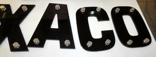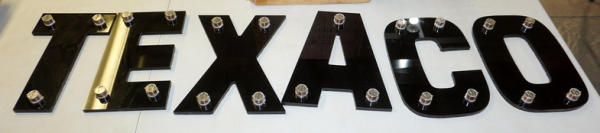 14" tall letters, 1/2" thick plastic, all NOS and never used, still have the masking on the face of the letters, box is marked Texaco, but on the rough side, neat piece