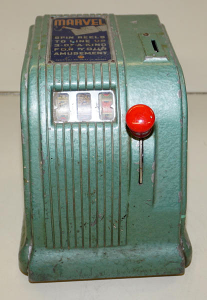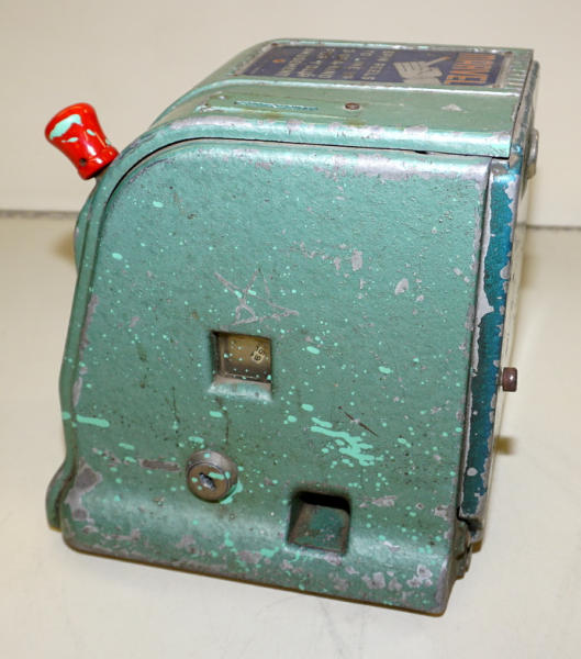 10"x7"x9", original finish, no key, finish is used and worn, but complete, does not need a coin in it to work