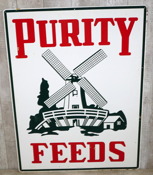 48"x36", NOS sign with some traces of paper still on the face, some light edge wear, but overall a large & impressive Feed sign