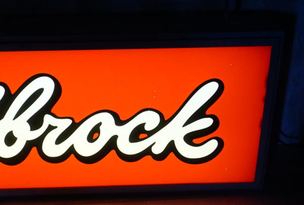 24"x73", flat plastic face, heavy metal can, lights up and works good, large & impressive sign we have not seen before, this would be great hanging in a Muscle car collection! No shipping, pickup only