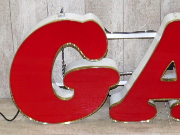 19" tall, 54" long, please letters with a 6" metal can mounted to a steel frame, fairly new, but looks great