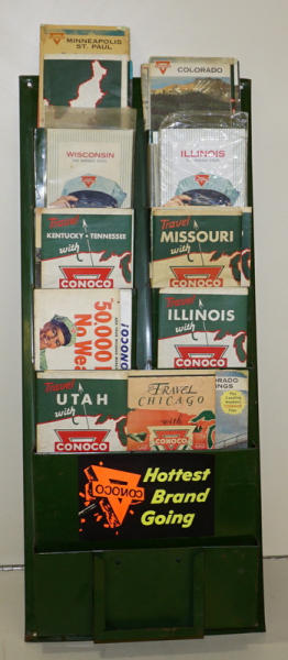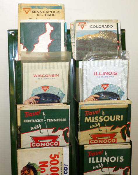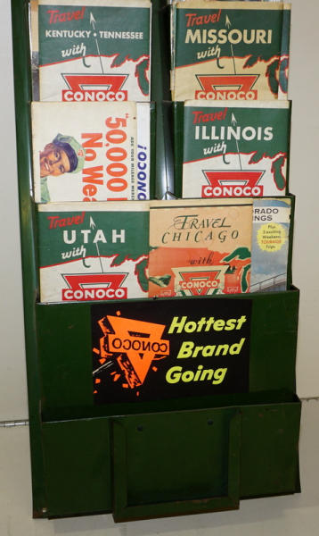 26"x11.5", nice original rack, comes with about 2-dozen original Conoco maps