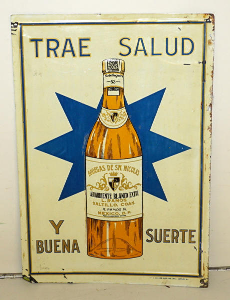 14"x10", Mexican Liquor, but the sign was made in Joplin, MO, wear to the edges